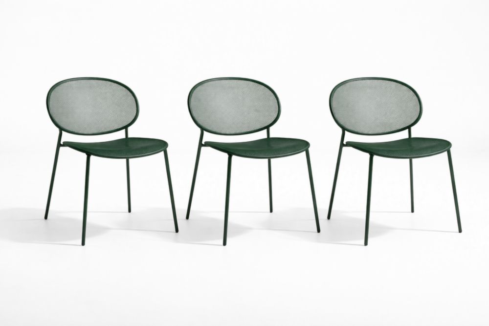 Dark Green Steel Mesh Outdoor Chairs Set with Oval Backrest