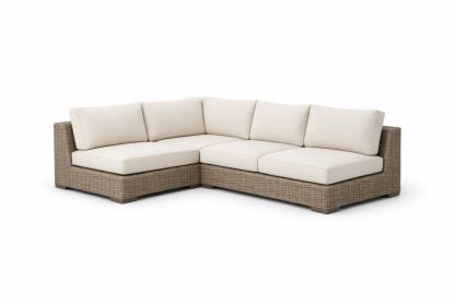 Woven Rattan L-Shape Outdoor Sectional Sofa with Beige Cushions